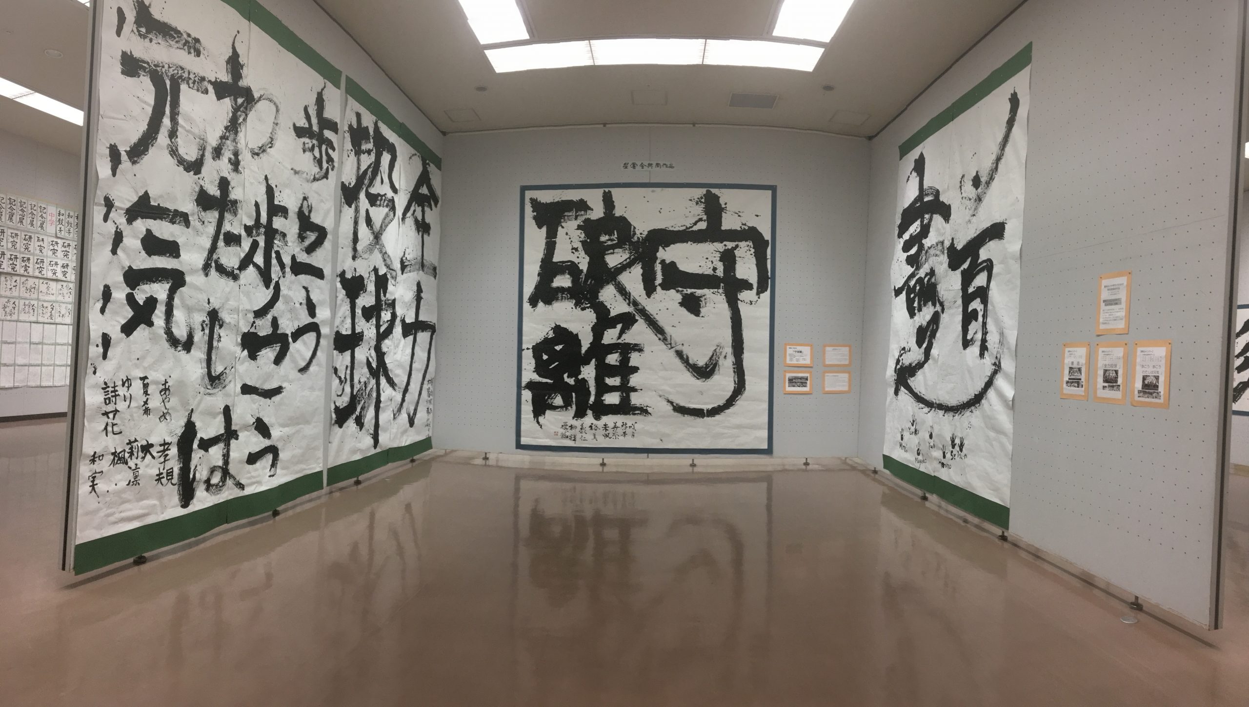 常任理事・理事・講師・星雲会の共同超大作作品と、夏休みに行う小中学生による共同超大作作品(中学生・小学生高学年・小学生低学年)の六点とそれぞれ違う表現作品で大迫力でした。