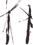 評:『木』の文字の大小や太い細いの変化がとてもあり素敵な作品です。林には様々な木が生えているので、そのイメージにもピッタリです。右側の間の取り方も効いていますね。