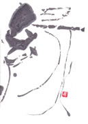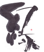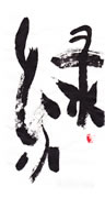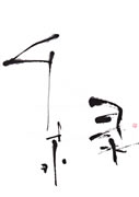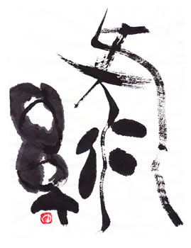 評:こちらは、淡墨で書いているのでみずみずしい緑のイメージがします。右側の軽やかな線が効いていますね。雨にぬれて水滴がついている若葉のようです。次の課題は余白をうまく生かせると、もっといいと思います。