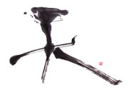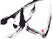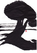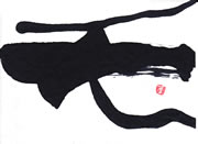 評:こちらの作品は、堂々として王様のひげのように見えました。1画目の「ボンッ」と墨が入っているのも効果的ですね。左右対称の字ですが、線の変化を出しているところがいいです。それから、小さい作品は出来るだけ墨を擦ったほうが色もきれいですので選ばれている作品のように擦って書きましょう。