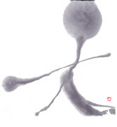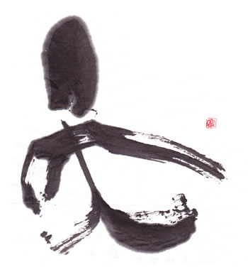 評: 「天」という漢字は、人の形からきているのですが柔らかい感じが出ているので天使のようなイメージがしますね。左下の余白が大きく空いているので軽やかな作品になっています。余白を取る位置によって印象が変わるので、書く漢字の意味によっても考えてみましょう。墨色がもう少しよかったら…いいと思います。