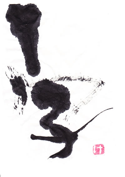 評:この作品は、一画目の思い切りがよく勢いを感じます。高さがあるので頭に帽子をかぶっている人のように見えます。とても元気がよく小学生らしい作品です。難をいえば二画目三画目の線がもう少し残っていると尚よかったですね。
