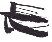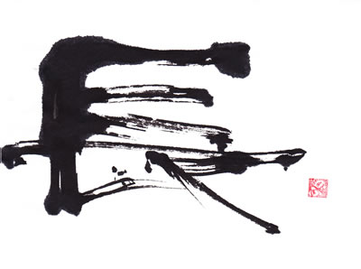 評:この作品は、横に長く書いているので、また違った印象になります。少し割れたところがカスレになって立体感がありますね。横画が続く字なので、いかに変化を出すかがポイントです。