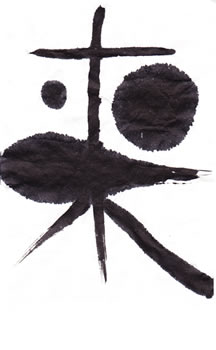 評:とても、ユーモアのある表情をしている作品だと思いました。墨も擦っているので柔らかい雰囲気に字形が合っています。泉の変化もさせ人の形にも見えました。字の中の白(余白)が、効いています。墨が入っていて尚且つ余白を生かした作品は、大きく見えますので、作品を書く時にイメージしておくとよいでしょう。
