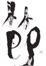 評:学生らしい元気な作品です。こちらも竹冠を思いっきりのよい線で書いているので竹の強さが感じられます。下の部分が似たような線になりましたが、節(ふし)の言葉にあっている作品です。元気がいいので、もう少し大きな紙で書いてもいいと思います。