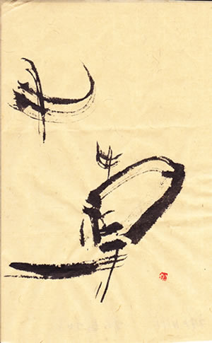 評:線に温かみがありますね、カスレや墨量もよい感じにあります。栄養や水分をよく吸って青々とした草をイメージします。やわらかい目の毛の筆を使うと線も温かく感じるので、色々な作品を書くときは、筆も変えて書くとどのような線が、字に合っているか勉強にもなります。
