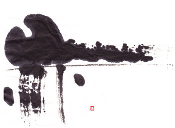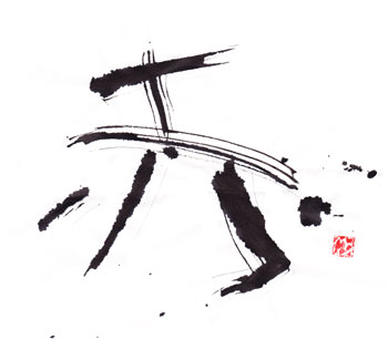 評:この作品は、横の広がりがあり線の変化もうまく表現している作品だと思いました。風を受けて赤々と燃えている火のようなイメージでしょうか?紙の下のほうに書いていて上の余白を空けていて線は軽やかですが、どっしりとした作品に仕上がりましたね。