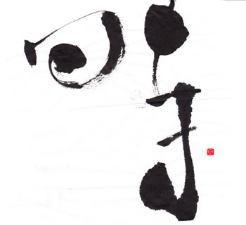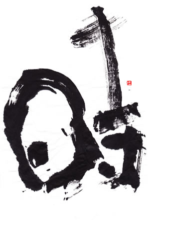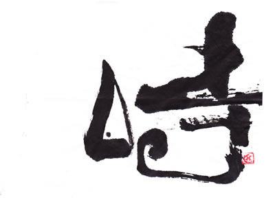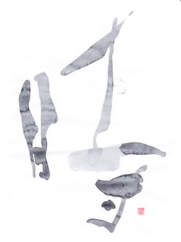 評:時を刻むようなイメージでしょうか?デザイン的に角張った線で、時計を表していsるように思えました。細い線を効果的に使って空間の取り方も面白いですね。墨をたっぷりと使った作品も良いですが、字の意味をどう解釈していくかも作品作りの勉強の一つです。