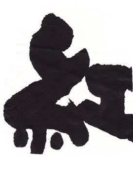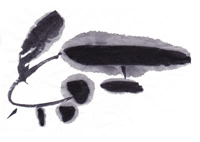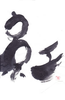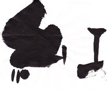 評:こちらも、滲みのある作品ですが、芯がはっきりしているので、少し日がたった墨を使っているのでしょうか?面白い滲みですね。工の部分の思い切りがよいです。線の太い細いが生かされています。墨の色も単に黒いだけでなく、赤みがある黒や青みのある黒など少しずつ違いますので、自分の好きな墨色の黒を見つけると面白いですね。