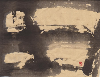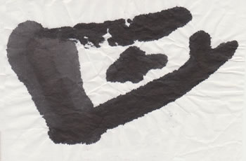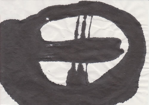 評:大胆でデザイン的な作品で、目をひきます。田の中の縦横の画と外の画との対比が面白いです。思いっきり太い線で田んぼの囲いを書いて水田に水を張りそれが一面広がっている感じがしました。余白をうまく使うようにと前回ではありましたが、逆にここまで紙面いっぱいも面白いです。
