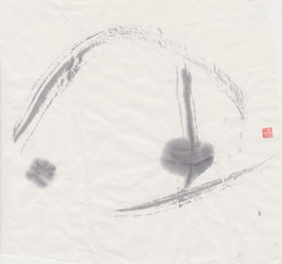 評:こちらも大きく円を描くように動きのある作品ですね。動きが大きいと線が生き生きします。田の漢字は、単純で左右対象な形ですので、変化を付けることを楽しんで書くといいですね。田んぼが広がる風景などを思い浮かべてみましょう。