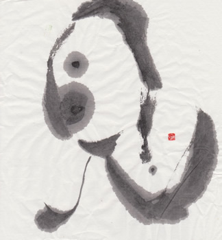 評:「見」という漢字は、大きな目で見ている人の形なので、まさにその感じが伝わります。淡墨のやわらかい線とにじみで構成されて、空間の使い方もいいですね。少し中のかすれの線が弱かったと思うので、左右どちらかもう少し線がはっきり見えても良かったと思います。