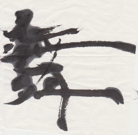 評:こちらの作品は、楽しく舞を踊っているように見えます。字の中の空間に変化があり、おおらかな印象を持ちます。線の太細があり、より立体的に見えましね。舞は、かっこよくかける字でもありますし、いろんな書体で書くと楽しいと思います。