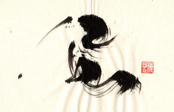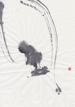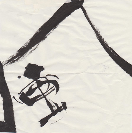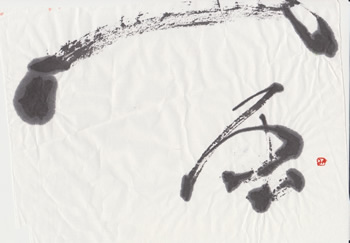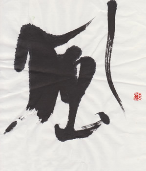 評:この「風」の字は、大きな凧や風船のようで、風を受けて大空へ飛び立とうとしているようなイメージをうけました。大胆に風がまえの中を開けて。動きがあります。中の虫の字を左右どちらかに寄せて、空間をうまく生かしたりすると、作品が生きてきますね。