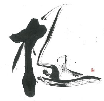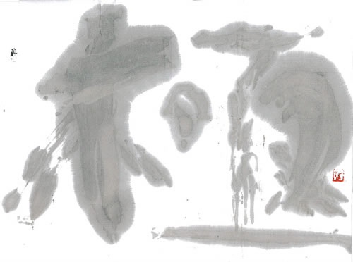 評:こちらは淡墨で、淡い漢字で雪が積もっているようですね。雪でも柔らかい雪のように思えます。寒い澄んだ空気の中にいるようです。極でも強く書いたりやさしく書いたりすると、全然イメージが違うものになるのが面白いです。