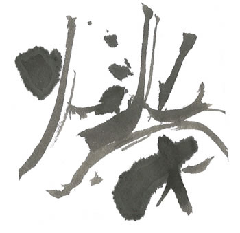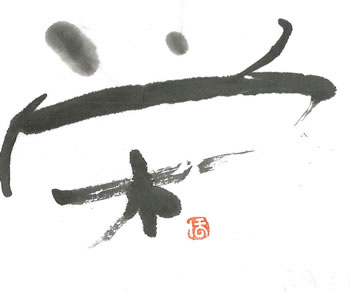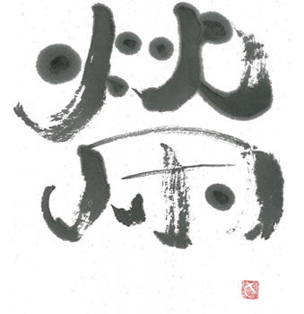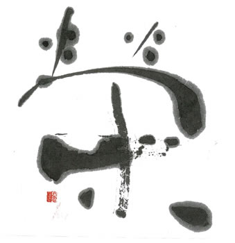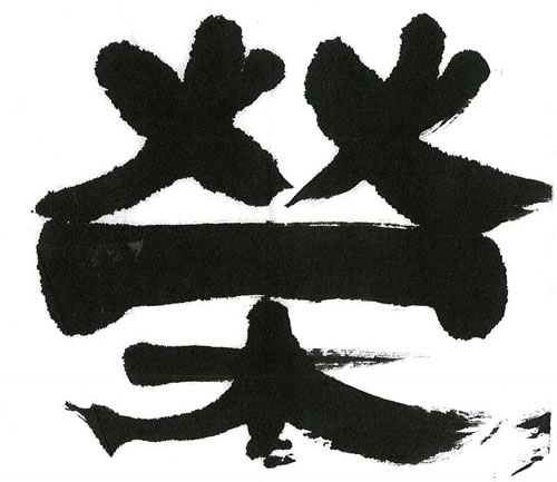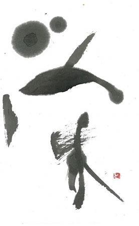 評:こちらは、線に厚みがあるどっしりとした作品です。形の変化はあまりありませんが上の部分の火か大きく、炎がメラメラと燃えているようです。小さく紙の中で、大きく動く作品で、魅力があります。この作品にあと少しアドバイスを加えるとしたら、どこかにカスレがあると作品が少し明るくなります。