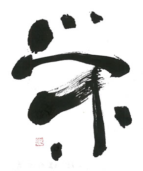 評:この作品は、字の中の空間をうまく生かした作品ですね。冠の線の動きも大きくて躍動感があります。外側の余白もそうですが、このように空気を取り込むような作品を作ってみるものいいですね。曲線を生かしてボールが弾んでいるようで、楽しい作品です。