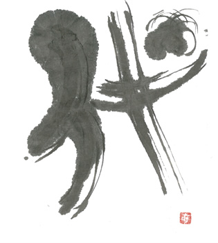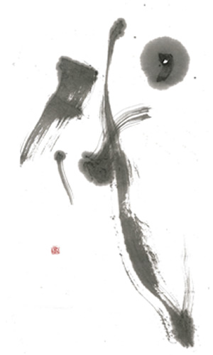 評:こちらは、打って変わって細みの線で、明るい作品ですね。少し毛の硬い筆でしょうか?ピンと張った線でスピード感があります。背伸びをしているような感じです。細い線の中にも少し墨の含んだ部分があるので弱く見えません。そこがいいところです。