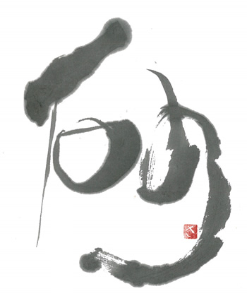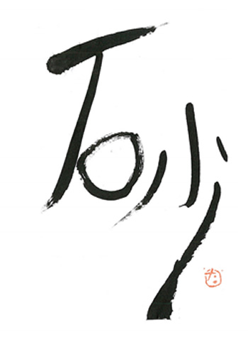 評:ふわ~と砂が舞うような軽くて明るい作品ですね。薄めの墨で線に柔らかさがあります。石と少の字の強弱で作品が立体的に見えます。砂丘の砂のようにサラサラしたイメージに思えます。最終画の斜めの線が風を帯びたようです。