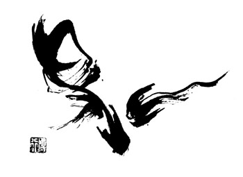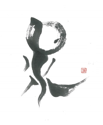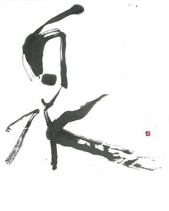 評:この作品は、とても動きのあり見ていて楽しい気持ちになる作品ですね。右に長く伸びたはらいが上向きで、勢いがあります。広がりがある足を大きく伸ばしているようです。字を紙の真ん中に書かずに左に寄せて余白を右に作っているのも、効果的ですね。「白」の部分も線の太細を使って変化を付けています。