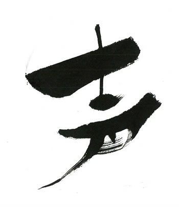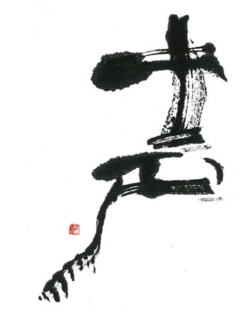 評:とても大胆な墨量で山の頂上で大きな声を出しているようです。白と黒のコントラストが聞いています。あとやはり筆で書いている良さを出すとしたら、遅速が見えるといいと思いますので、どこかに空気の入ったカスレがあると作品全体に動きかでると思います。