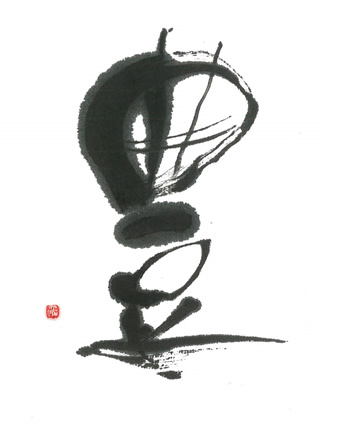 評:『豊』の意味のように、墨量があり存在感のある作品です。字を紙の中心に書かず右に寄せることで、余白ができ作品に明るさと動きが出ます。『豆』の部分の表情がいいですね。四角くなりやすい字にうまく動きを付けていると思います。