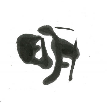 評:こちらも墨量の変化に富んでいて楽しく書いているのがよく伝わってくる作品です。月の左のカスレが作品を重たくせず立体的にみせています。季節は違いますが、月明かりの下の月見の団子のようで愛らしいです。