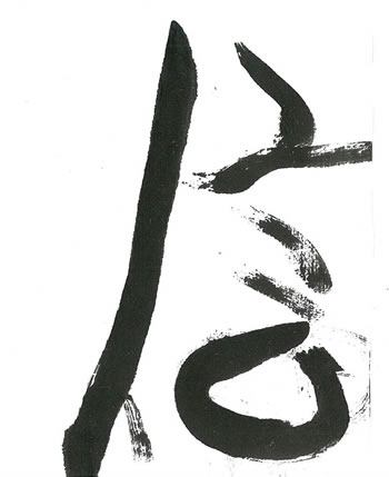 評:とても縦長な作品で楽しく書いているのがよく伝わります。言の横画の間隔も変化を付けて字の中の空間に遊び心がうかがえます。磨った墨で濃い目の淡墨で線も柔らかく見えます。このような作品はのんびりとした時間か流れるような線で、上の作品は勢いがあり時間が早く流れるようですね。