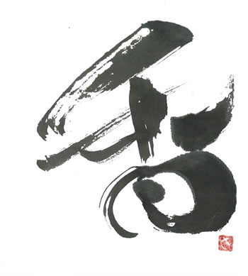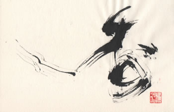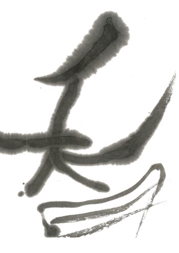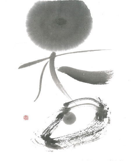 評:宿墨を使った淡墨できれいな基線が出てとてもさわやかな作品です。香しいという言葉が似合いそうですね。淡墨作品は、にじみが大事ですが、その中にスピード感のある線、カスレなどが更にあると作品に動きが出てきます。