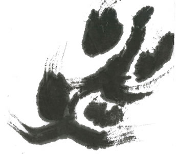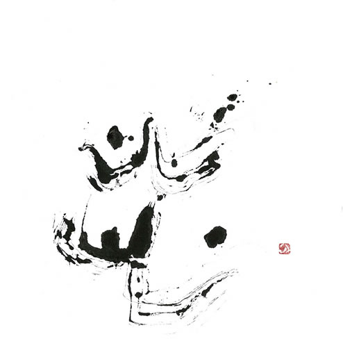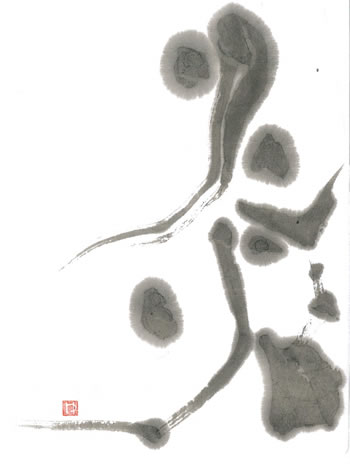 評:こちらは、炎が燃えて火の粉が飛んで激しく燃えた後のような消えかけの炎のように見えます。筆ではないような線で面白い作品に仕上がっていますね。炎でも時間が経つと消えてしまうので、その雰囲気がよく出ています。