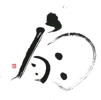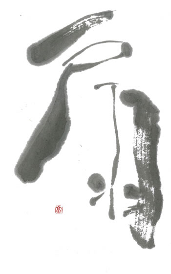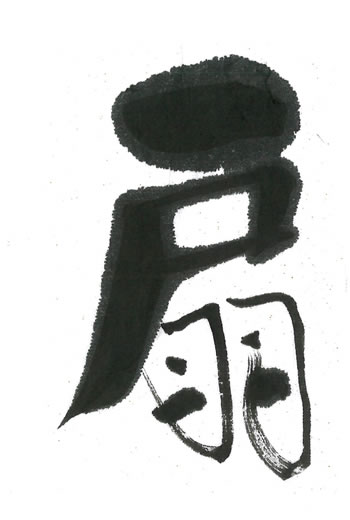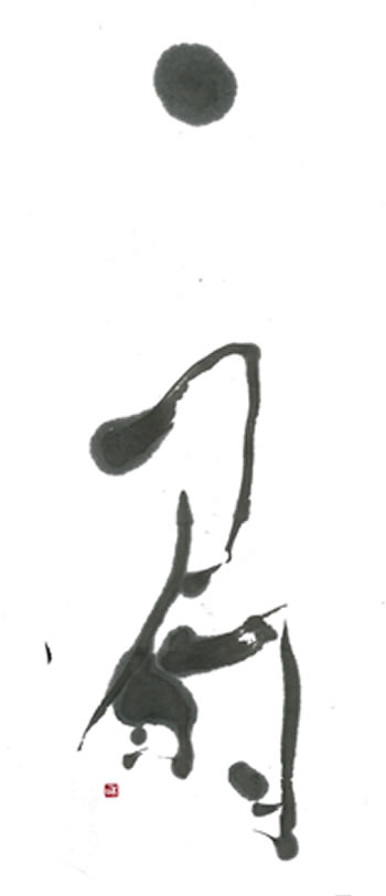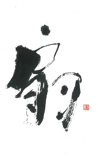 評:今回の作品は、扇を広げている様を表しているような丸みを感じる作品です。羽の部分がかすれで軽やかになっていていいと思います。墨量とカスレの対比が作品を引き立ています。右側の羽のなかの点をあとすこし工夫してもいいかと思いました。