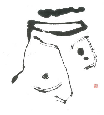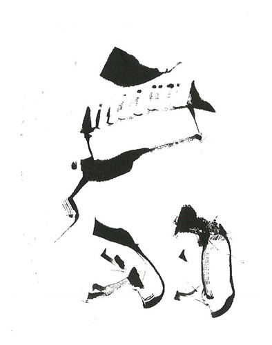 評:割りばしで書いているのでしょうか。面白い線が出ていますね。細い線や点々と線が飛んでいるところなど多彩です。以前、未踏サークル展の体験コーナーでで鳥の羽を筆代わりに書いていました。筆以外のもので書いてみると思いもよらない線が出る時があるので、機会があれば挑戦するものいいですね。