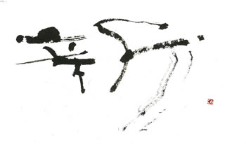 評:にじみとカスレが効果的にある作品です。みずみすしいイメージがします。淡墨の作品も少しカスレをいかしてより立体的に構成するいいですね。最近やはりオリンピックの話題がよくでますが、風を切って氷上で滑る選手たちにも見えてきました。