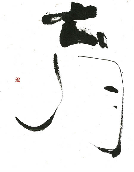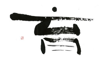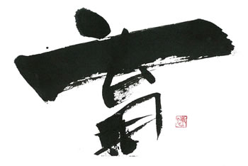 評:文字造形としては、極端な構成ではないですが、線の勢いがよく出ていて月の線の安定感との対比で好印象を持ちました。勢いがあるのが、若々しいイメージで、すくすく育っていくような感じがしました。線質の変化で、表情が変わりますので、作品を書く時はどのような感情や情景かを想像して書いてみてください。