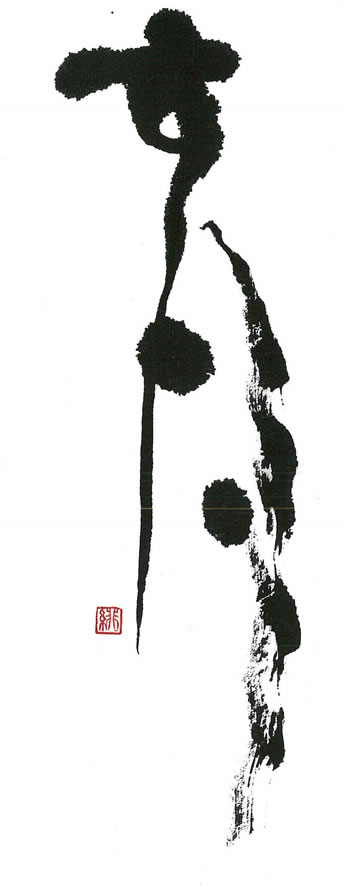 評:とてもお洒落な作品です。細い線とにじみを工夫し。繊細なタッチの絵画のようですね。やわらかい印象をもちますので、女性的な作品といえます。紙の真ん中に書かずに右によせて空間を作っているのも表現の一つですね。