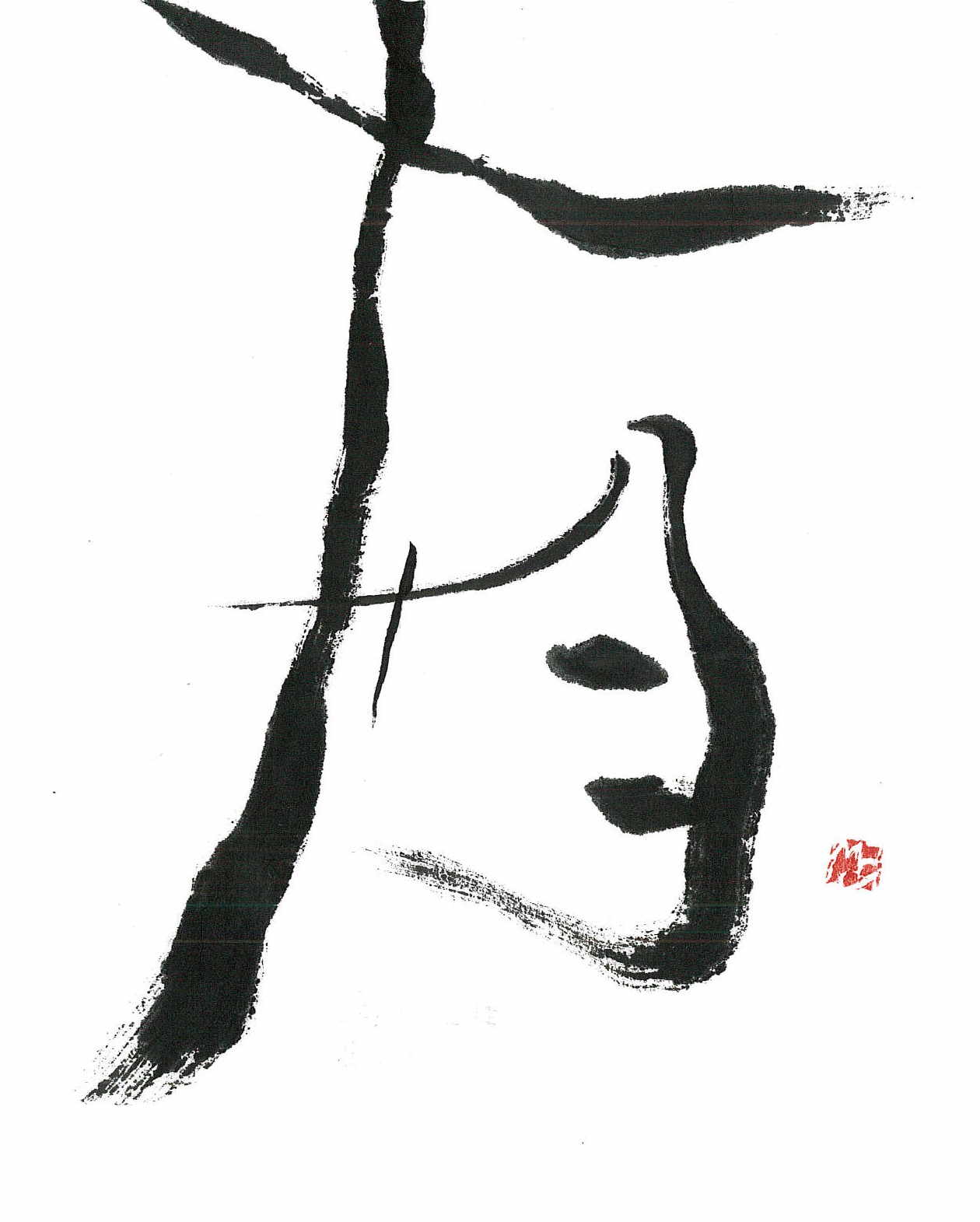 評:とても表情があり、楽しく書いているのが伝わります。少し傾いたのが首をかしげて覗いているようにも見えますね。一画目からの入りがしっかりしていて、続く線が軽やかで変化のある作品ですね。