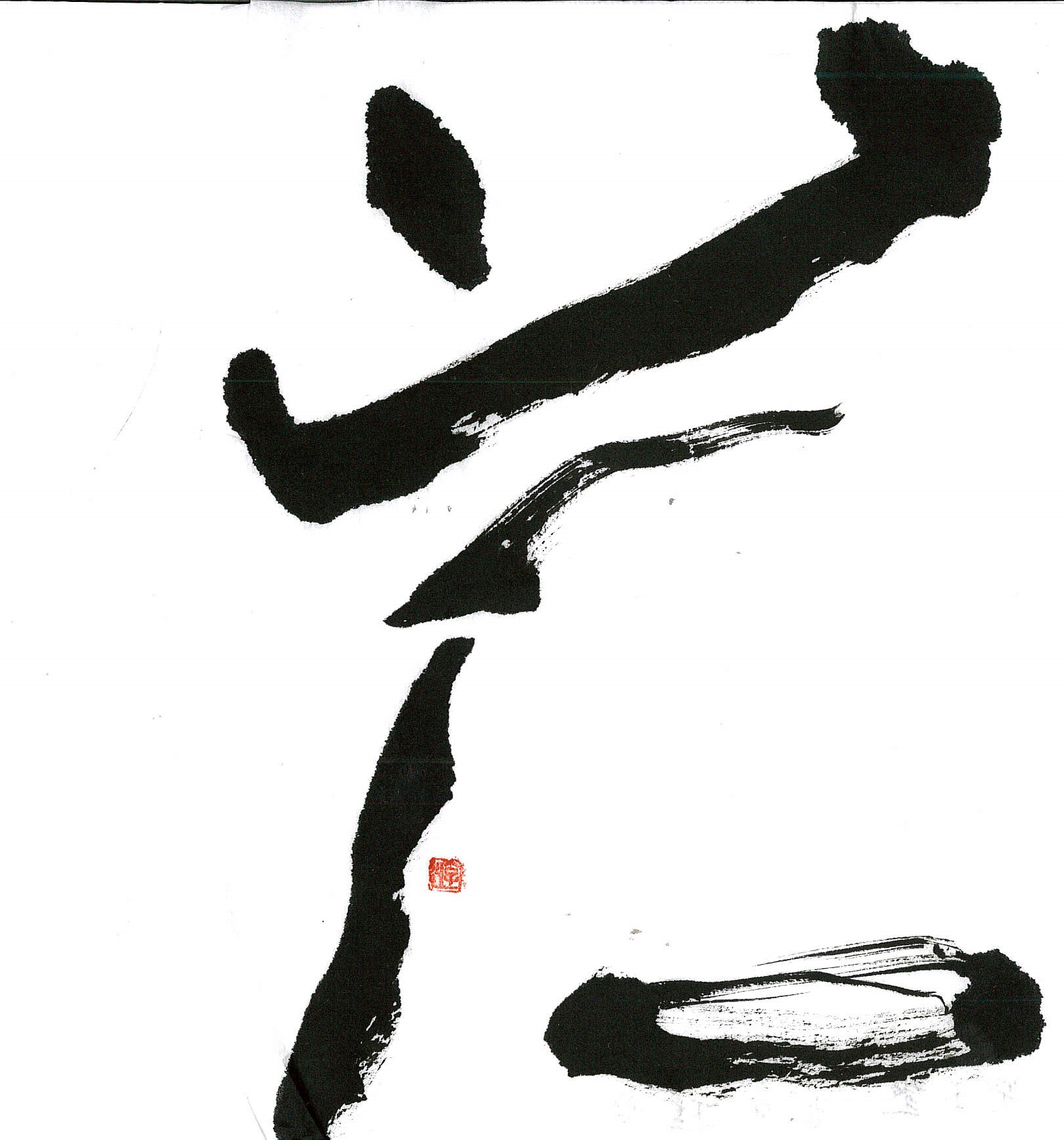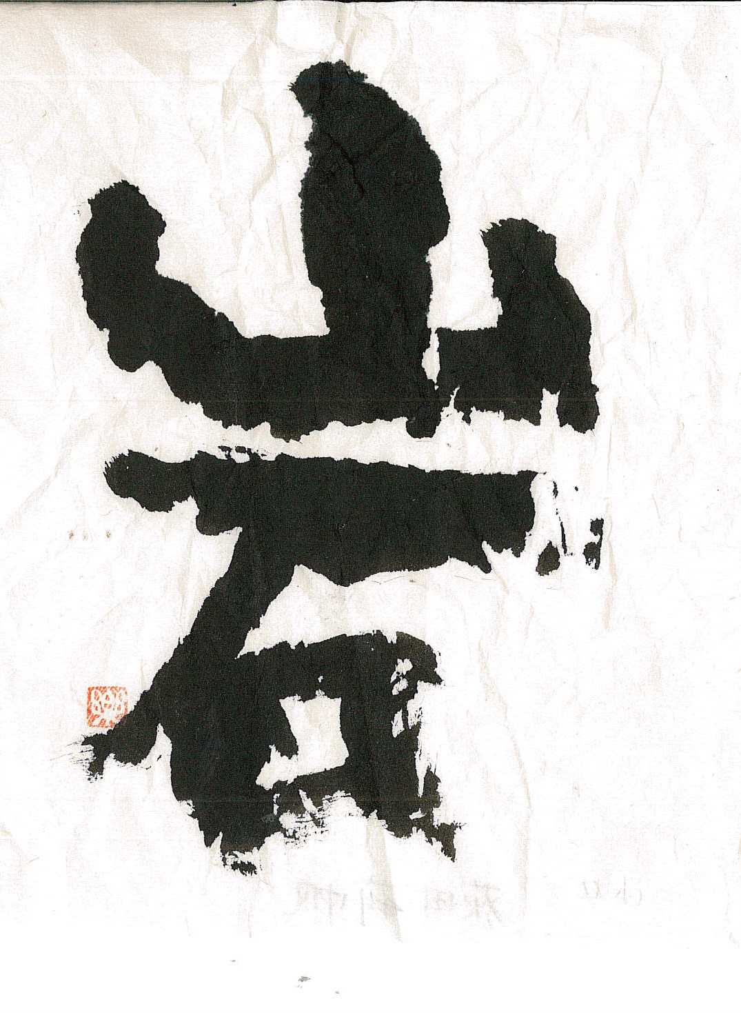 評:ごつごつとした岩の雰囲気がよく出ている作品です。墨色も粒子が荒く古墨の感じが岩の表面見たいです。字形もどっしりとした線ですね。皆さんもその言葉や漢字の意味や情景を浮かべられるような作品を目指してみてください。