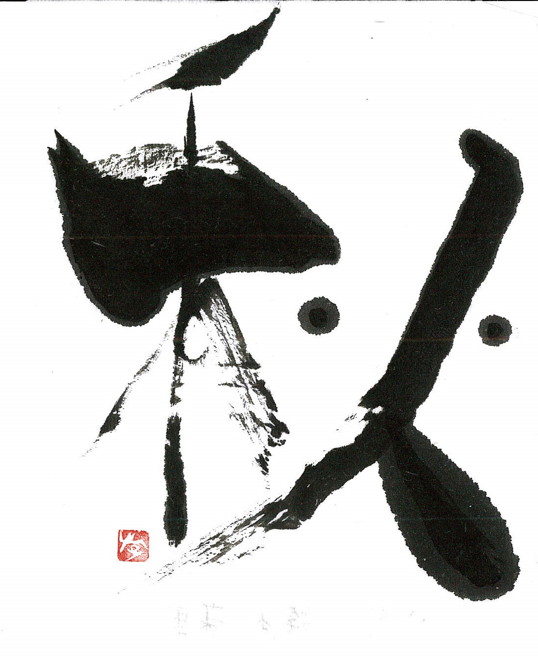 評:爽やかな印象で、秋晴れの澄んだ空気を感じます。コスモスが咲いているようとか想像すると楽しいです」。細い線や淡墨で書くとそのような雰囲気を出せると思います。漢字の意味によって濃い墨や薄い墨と使い分けるといいですね。淡墨の場合は墨を摺えりましょう。