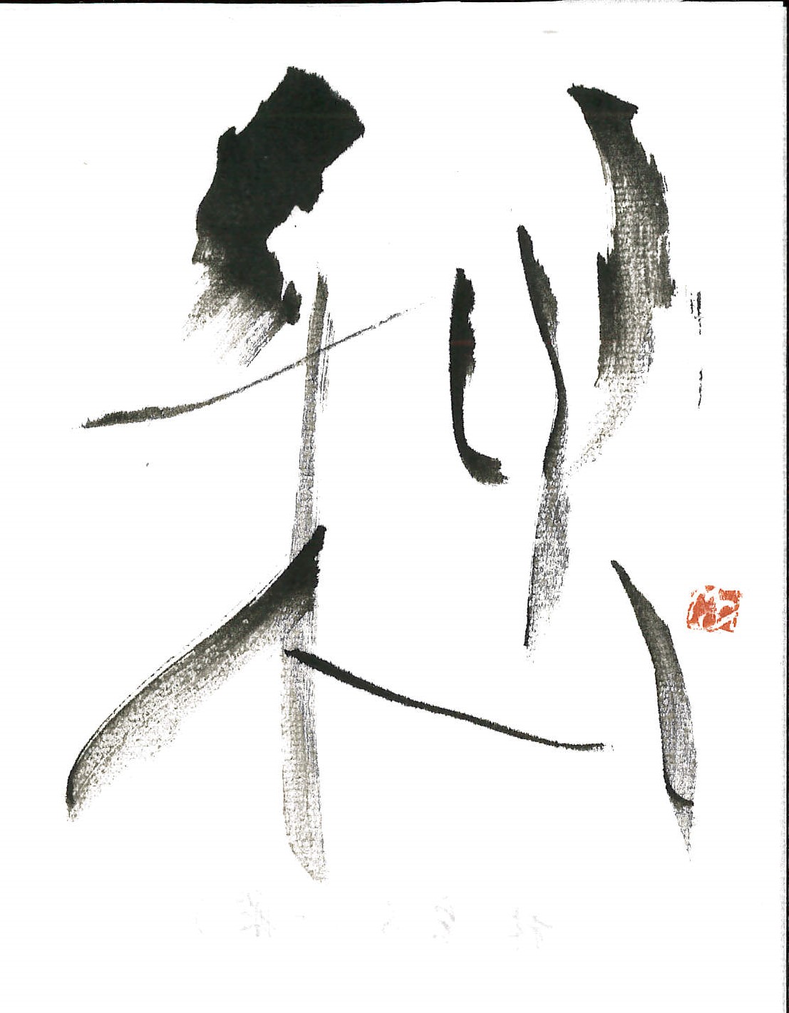 評:ここちらは、しわがれた線なので枯れた草やススキなど…そんなイメージがします。超長鋒を使っているのでしょうか。また沙美をクシャっとして、そのしわをいかしているのでしょうか。面白い作品です。