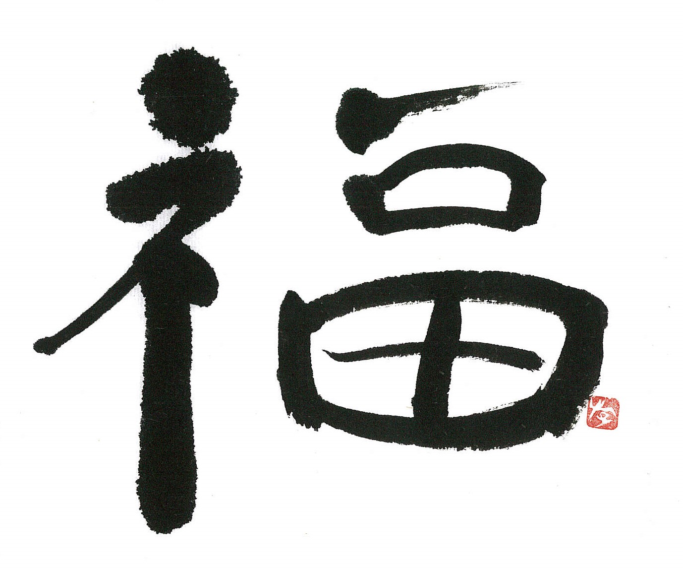 評:今回は、「福」でおめでたい字を想像します。この作品も笑っているように見えて、楽しく感じました。最近はなかなか大きな口をあけて笑うとか想像しにくい世の中ですので、作品を通してホッと笑えると心も温かくなりそうです。