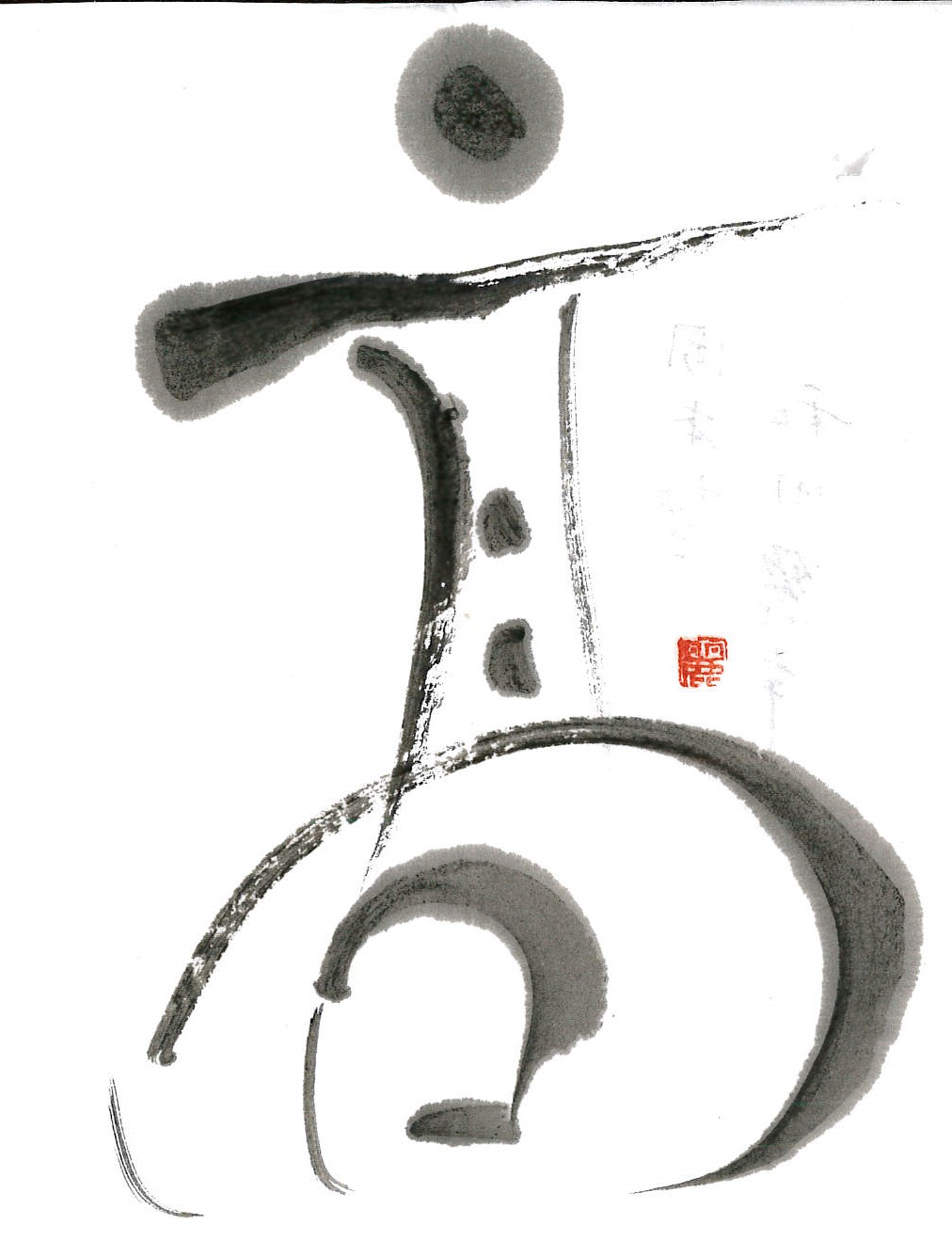 評:シャープな線で、高いタワーが建ってるようなイメージでした。昔の塔のようにも見えますが現代的な建物のようにおしゃれな建造物にも見えます。細くてかための毛の筆を使って書いたのでしょう。線質を変えると作品のイメージもガラッと変わります。