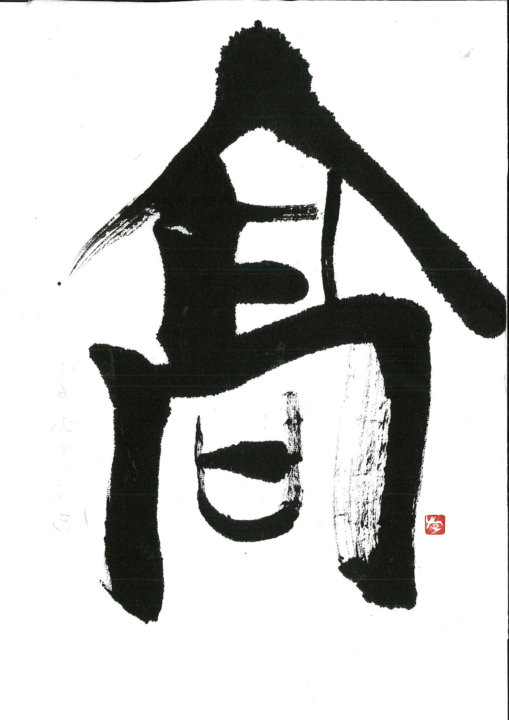 評:こちらは、どっしりとした建物でお城のように思いました。左右対称の漢字ですので、線の太細に変化をつけて元気に書いています。梯子で天守閣に登ったらいい眺めが見えるようです。