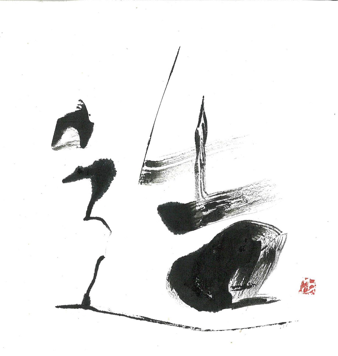 評:こちらは筆ではないもので書いているのでしょうか、面白い線が出ています。硬いものでしょう。色々な面を使っているので太細が極端にでていいですね。皆さんも新しい線を見つけてみてください。