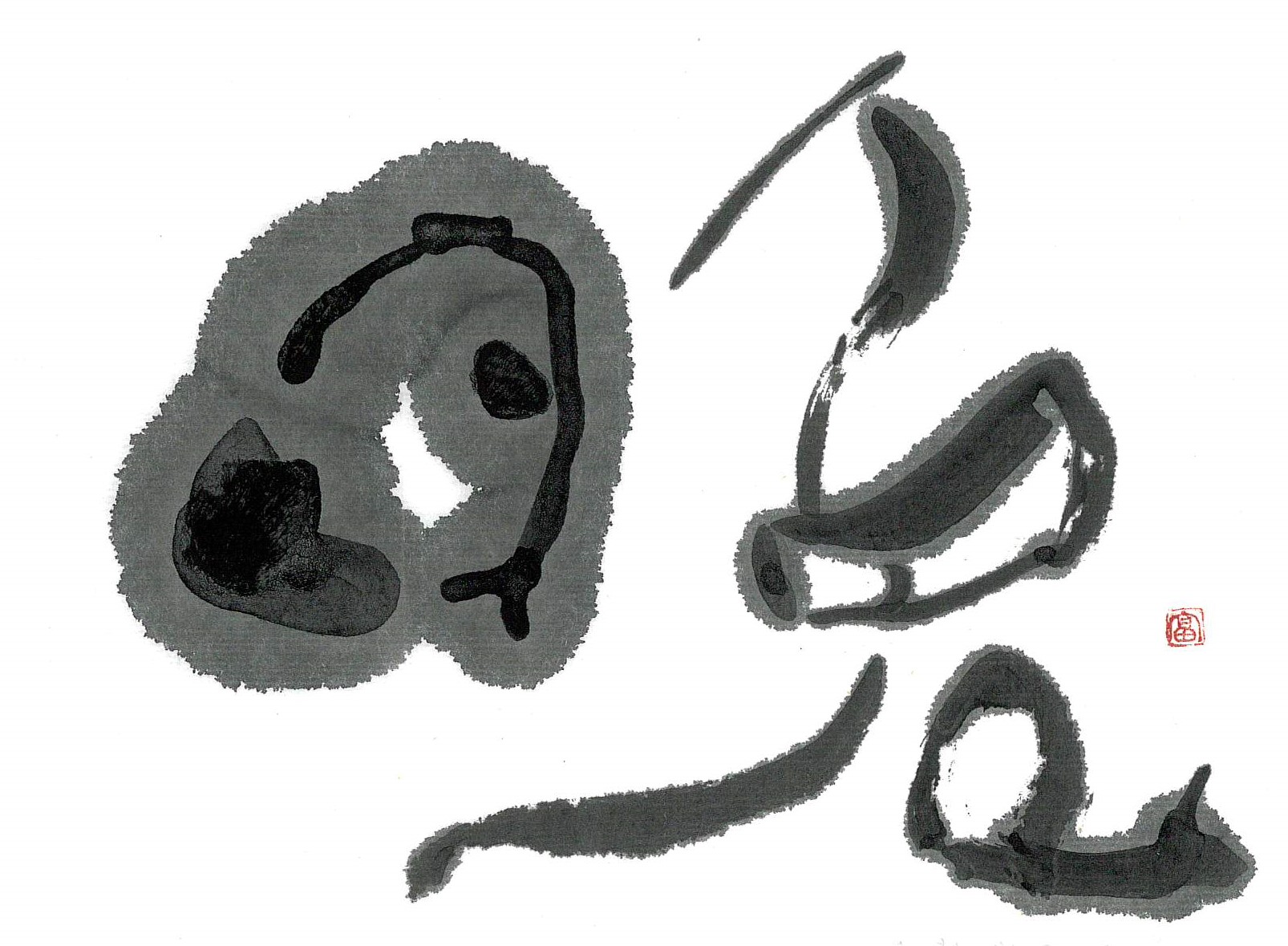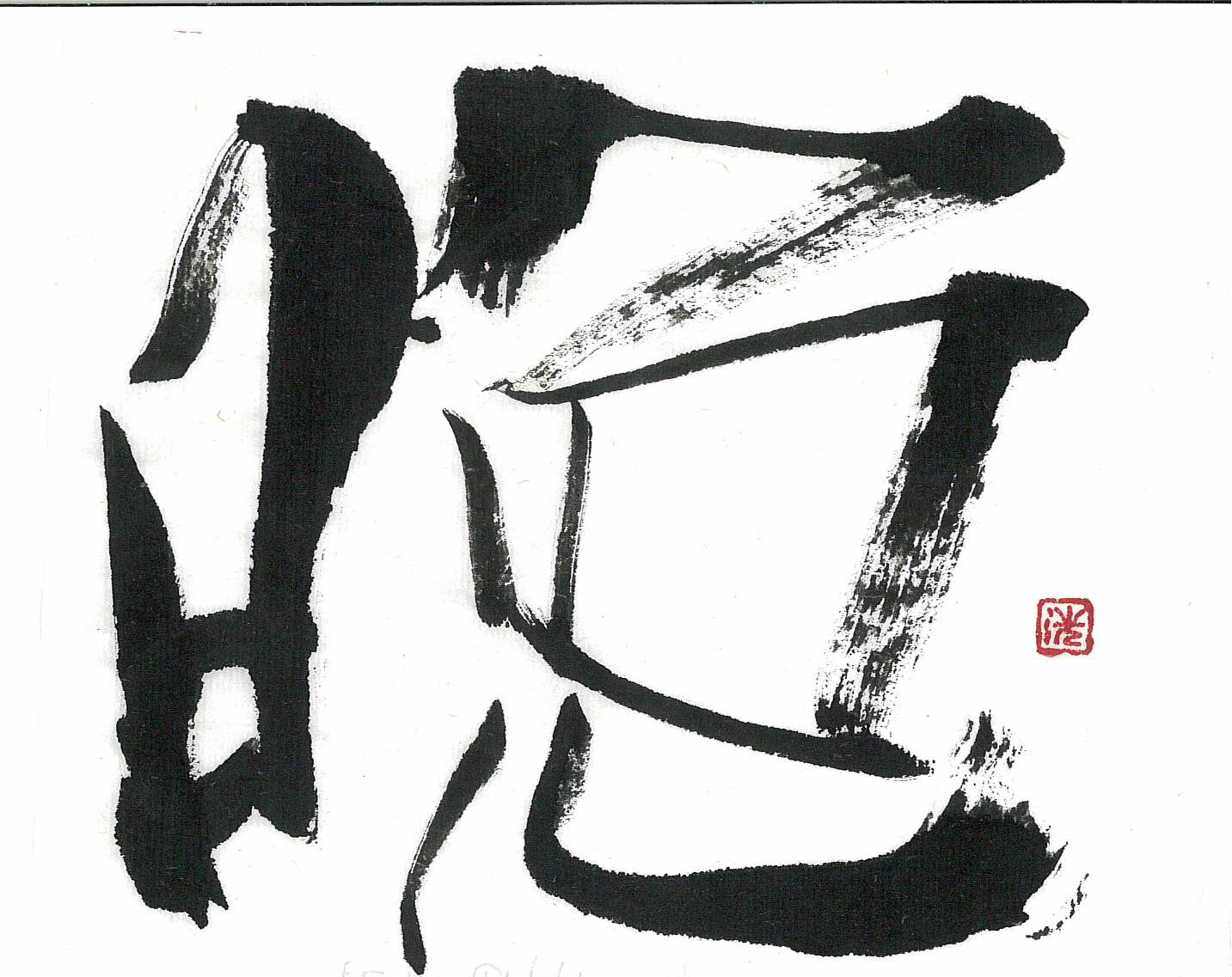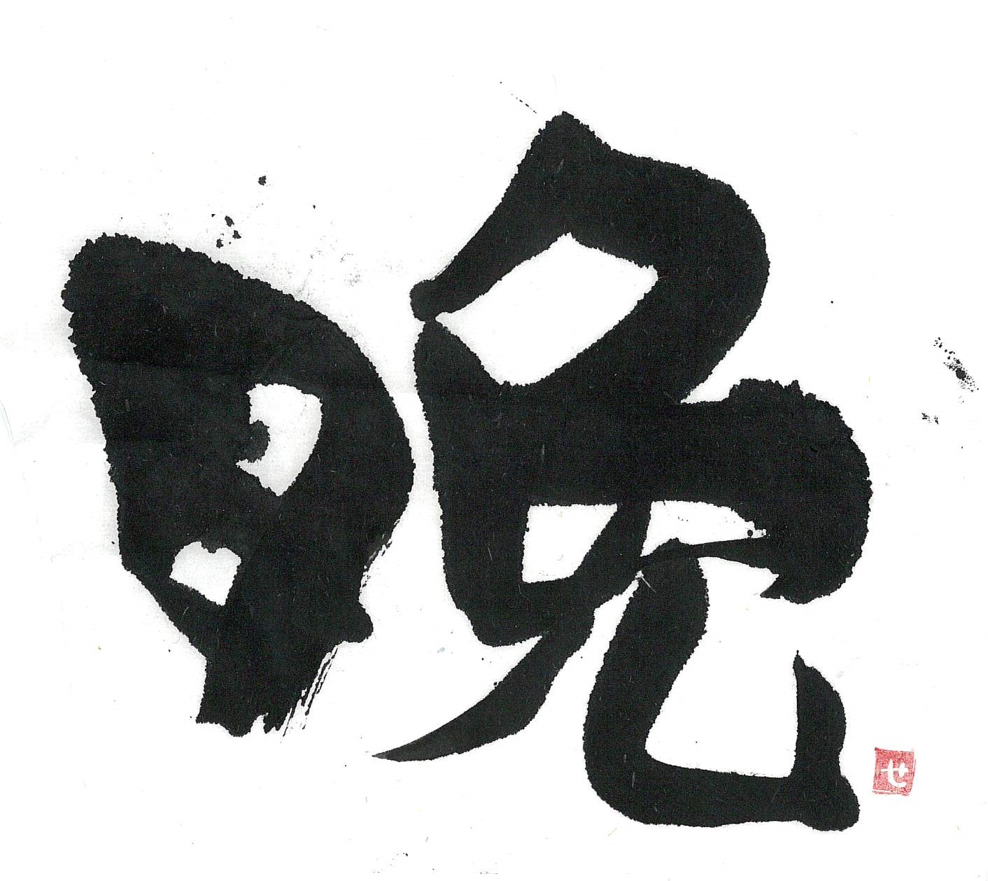 評:線の勢いが強くカスレが効果的です。晩は遅いや暮れの意味がありますが黒を見せるには周りの白やカスレがあるとより引き立ちます。しっかり墨をつけて黒々した日暮れの様子を表現してみましょう。