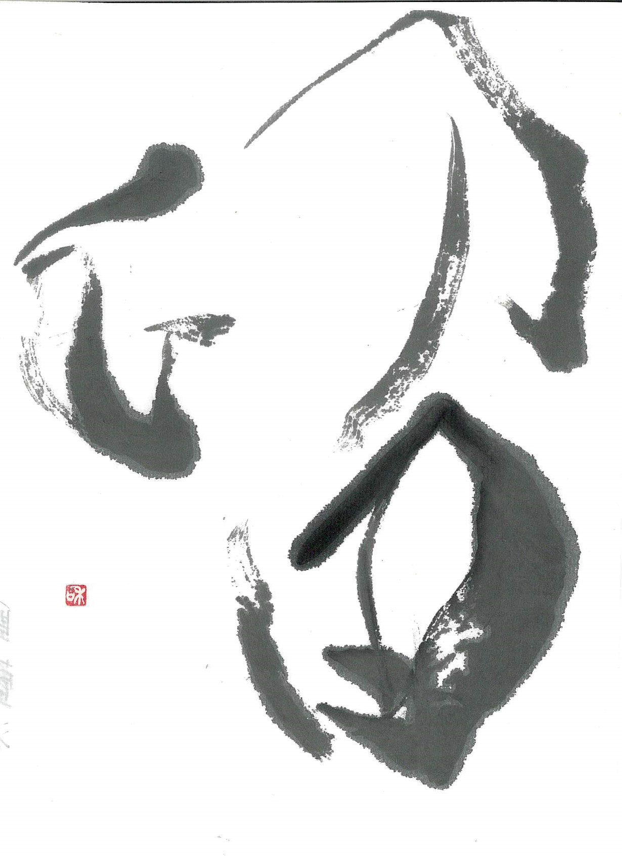 評:こちらは対照的に軽やかで細い線を生かして書いています。トップの作品と同じく上の部分のバランスや大きさを変えて変化を出していますね。長鋒の筆は毛が長く扱いにくいですが、面白い線が出る場合があります。一画目からの動きはまさにそのような感じですね。