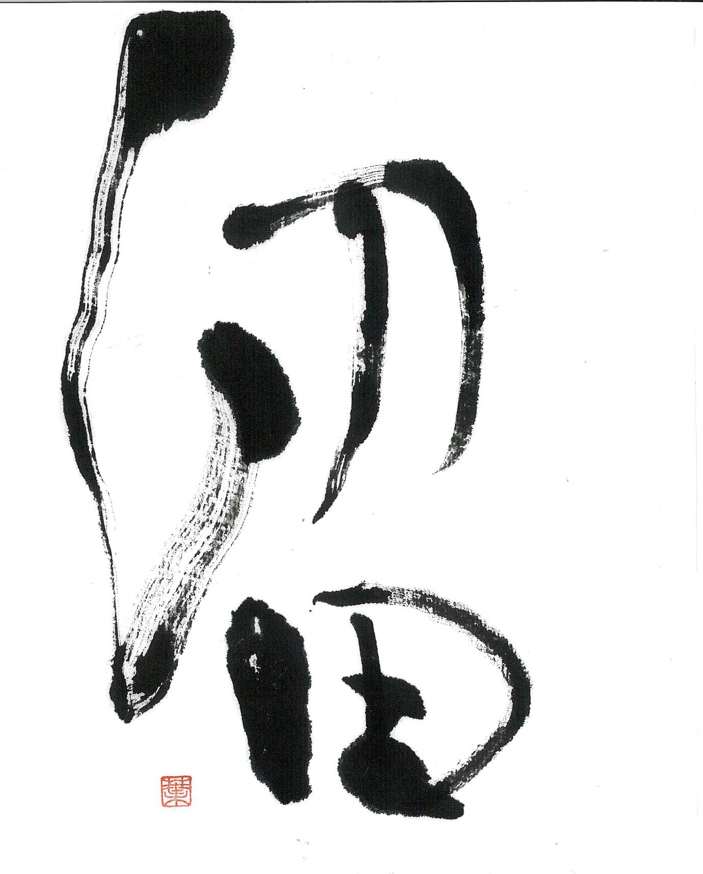 評:温かみのある線で作品に安定感があります。上の部分の左右の比率を変えたので、文字に動きが出ていますね。四角い形になりやすい字はあえてバランスを変えるといいです。印の位置は、自由ですが左側にあってもいいと思います。
