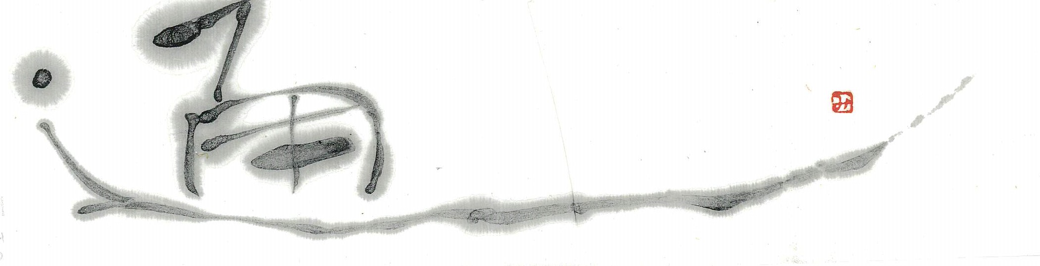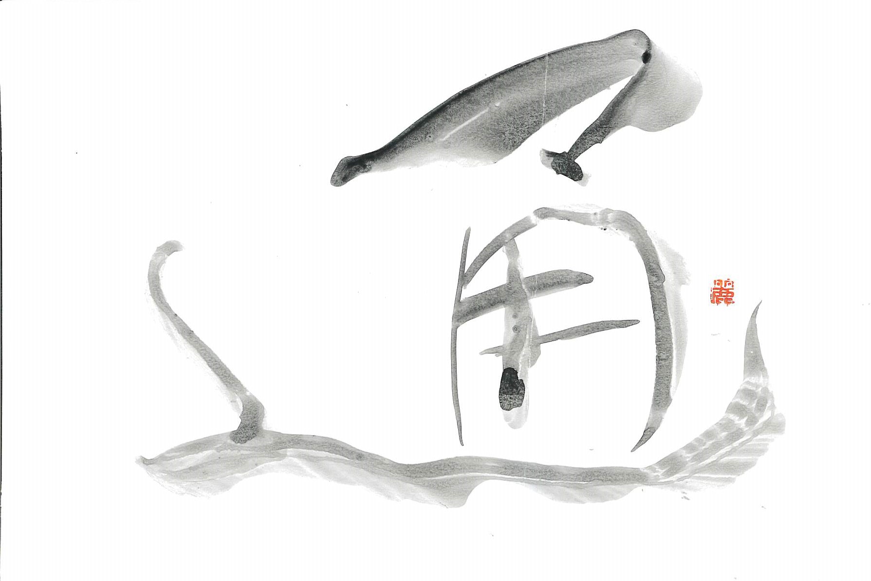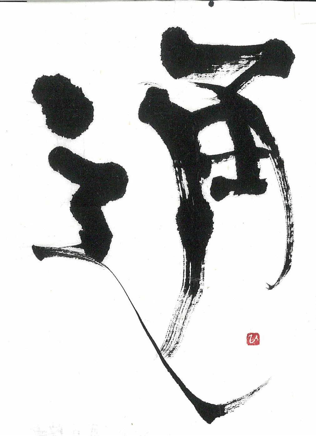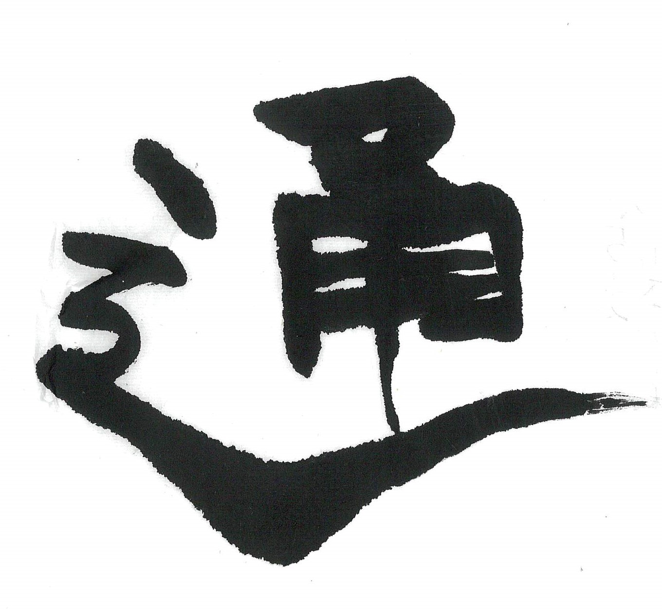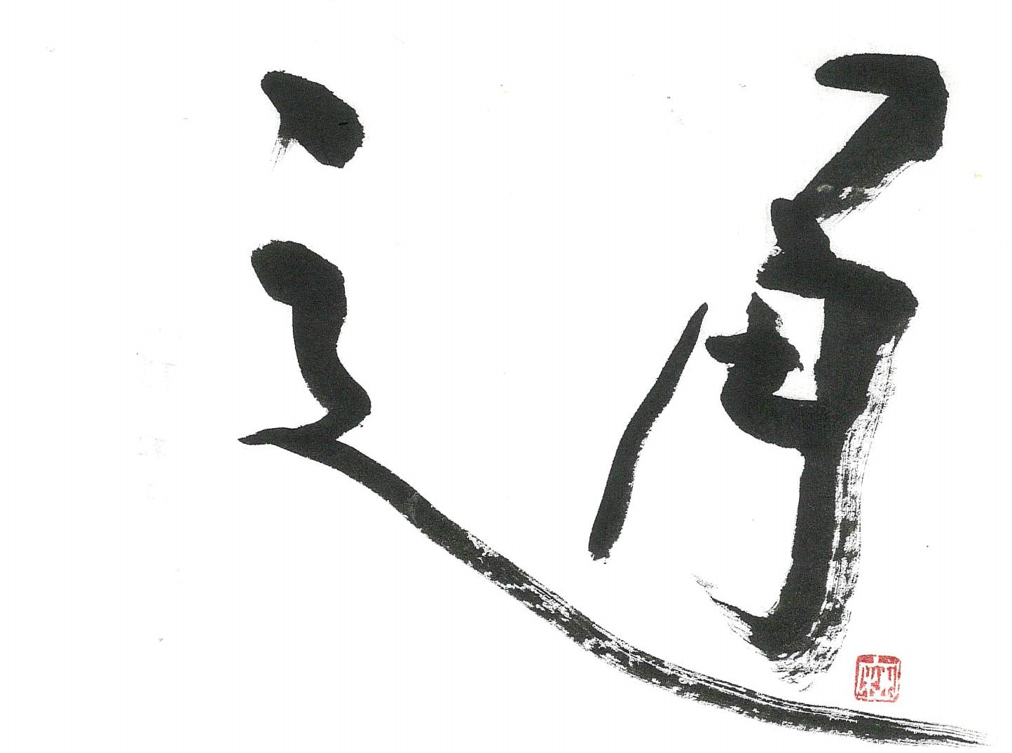 評:きれいな淡墨で基線がしっかりでている墨色です。しんにょうを思いっきり長く書いて、進んでいる道をイメージさせますね。紙のサイズは小さいですが、空間があるのでゆったりとした作品に見えます。