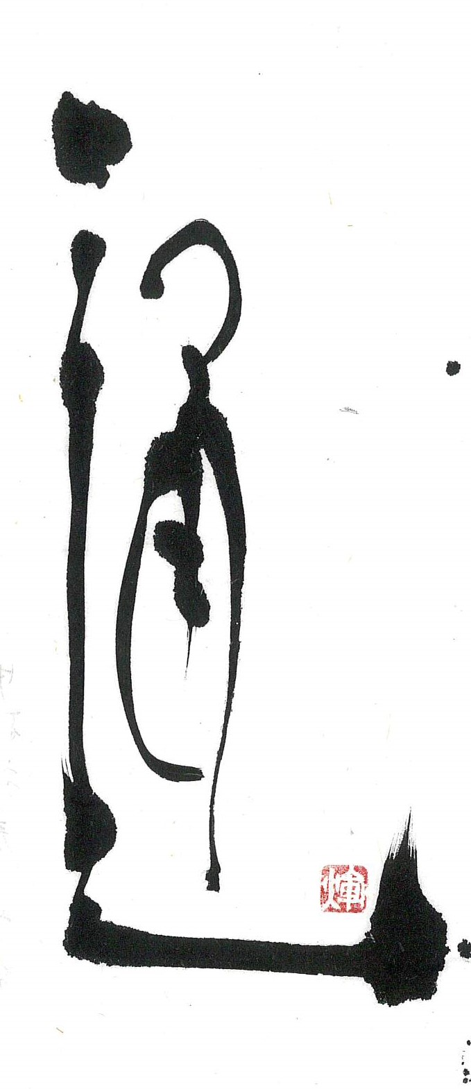 評:しんにょうを大胆に書いている作品です。前に進んでいくような勢いがありますね。墨の潤渇があり空間もうまくつかんでいると思います。ほっこりする作品です。