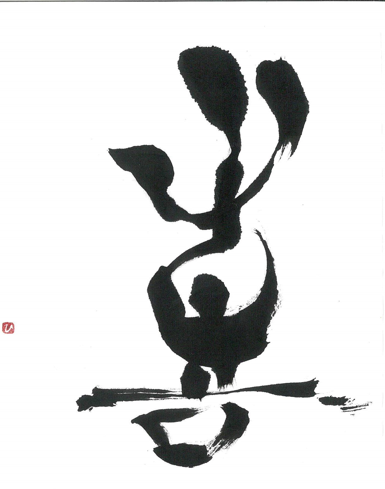 評:草書で書かれていて、大人のような高級な線が出ています。カスレを生かして筆の開いた線が、大人顔負けです。喜んでダンスをしているようですね。