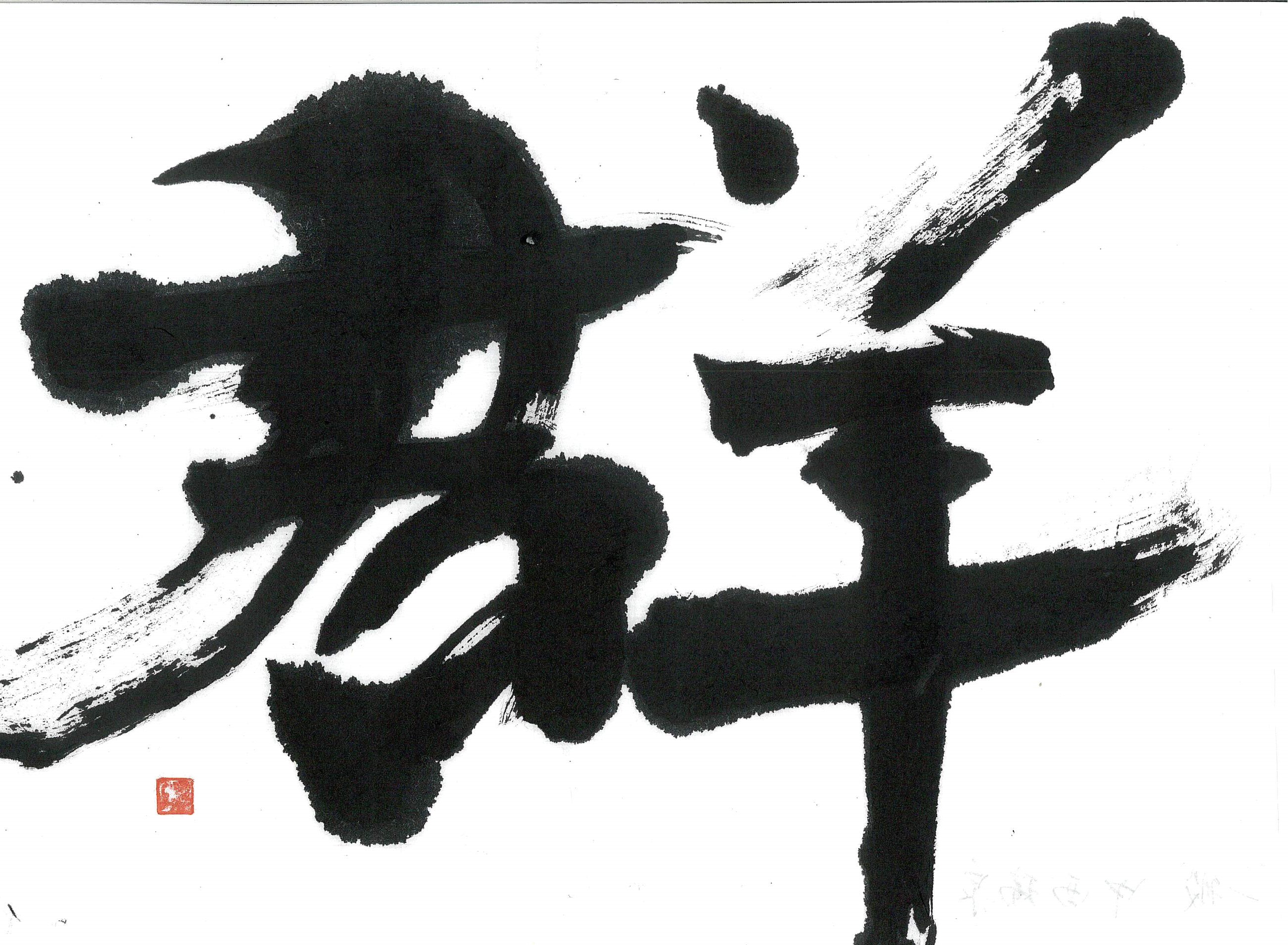 評:こちらは可愛らしく書かれていて、羊の字がとんぼのように見えました。余計か力が入っていない楽な線で書かれているので、上の作品とはまた違いホッとする作品になっていると思います。